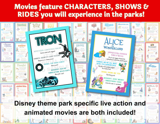 Animated Disney Classics Dinner and a Movie Night Menus Set of 56 Unique Movie Menus