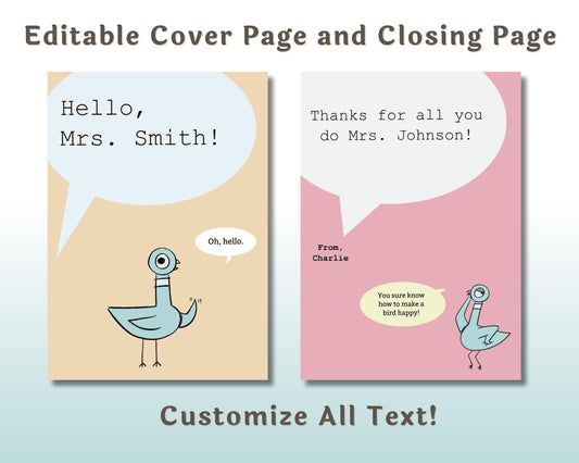Editable Pigeon Gift Book Teacher Appreciation Gift — Instant Download