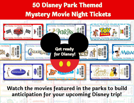 Animated Disney Classics Mystery Movie Night Tickets Set of 56 Unique Movie Night Tickets