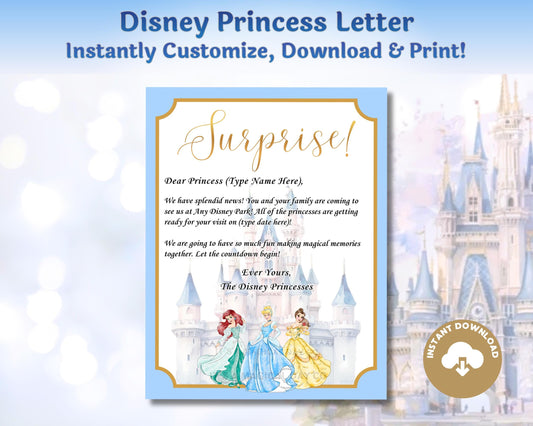 Editable Disney Princess Trip Reveal Letter