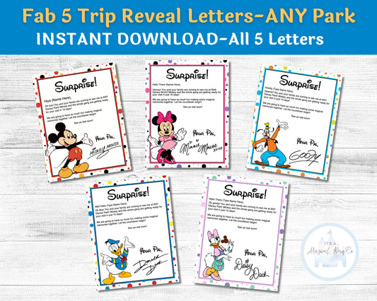 Editable Disney Trip Reveal Letters from Mickey Minnie Donald Daisy and Goofy