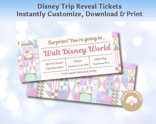 Editable Small World Disney Trip Reveal Tickets