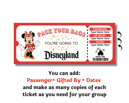 Editable Disneyland Minnie Theme Park Surprise Ticket