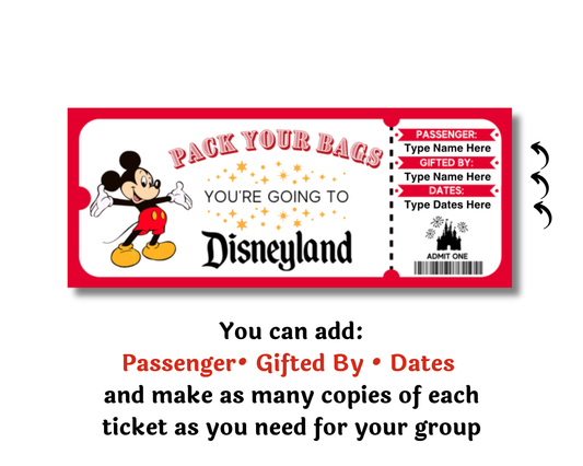 Editable Disneyland Mickey and Friends Theme Park Surprise Ticket