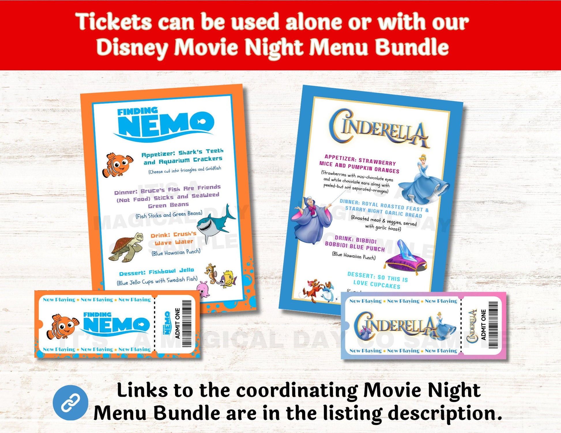 Our Set of 56 Movie Night Tickets also coordinate with our Set of 56 Movie Night Menus Bundle.