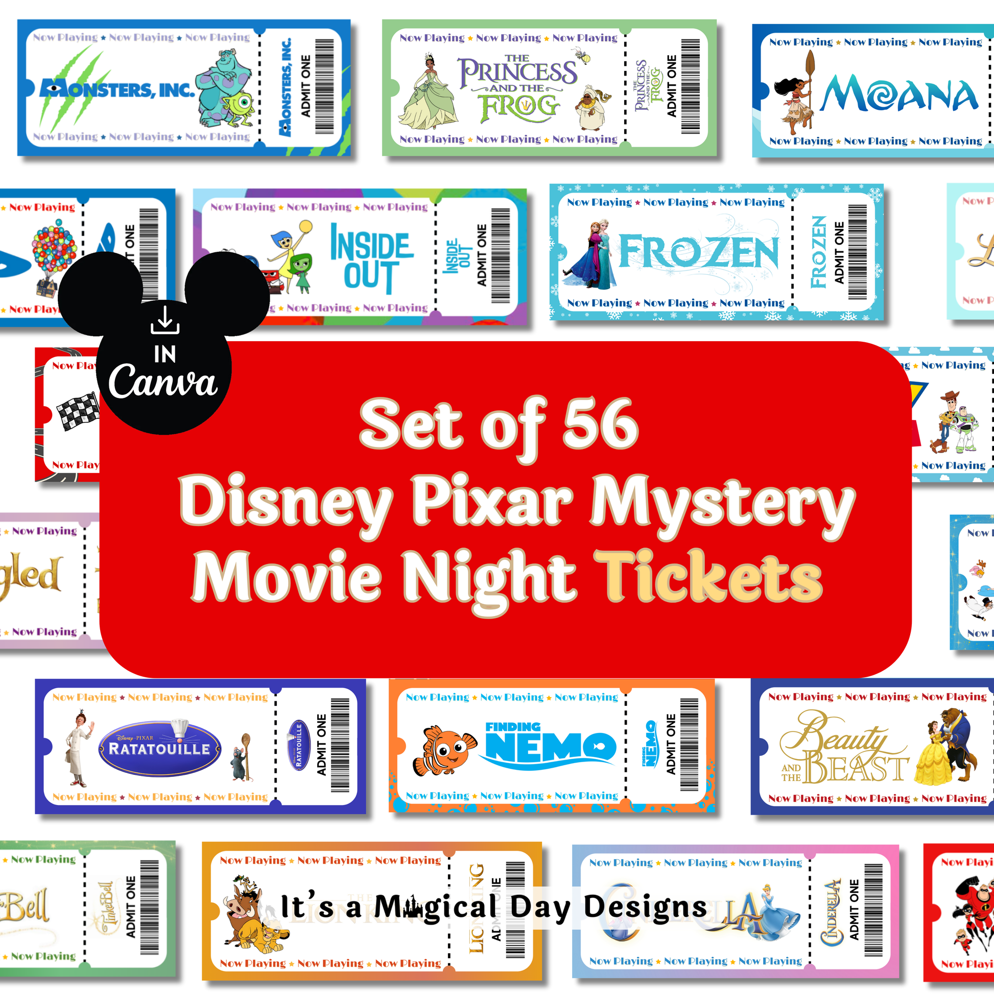 Animated Disney Classics Mystery Movie Night Tickets Set of 56 Unique Movie Night Tickets
