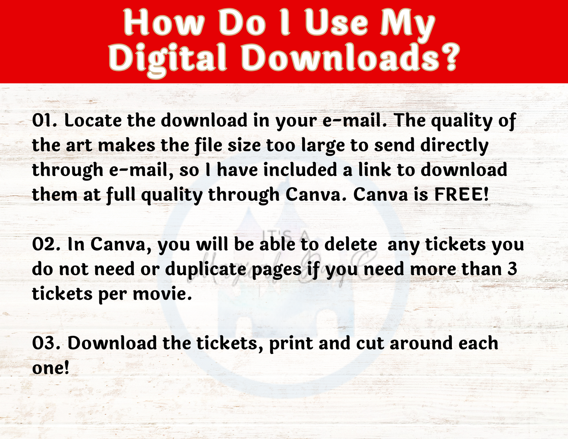 🌟 To Print: Simply download the PDF file with the link the the Movie Night Tickets in Canva. Canva is FREE! You can add or subtract tickets, download them and then print them at home or send them to your local print center. I recommend printing on white cardstock for the best results, but regular white paper will also work.