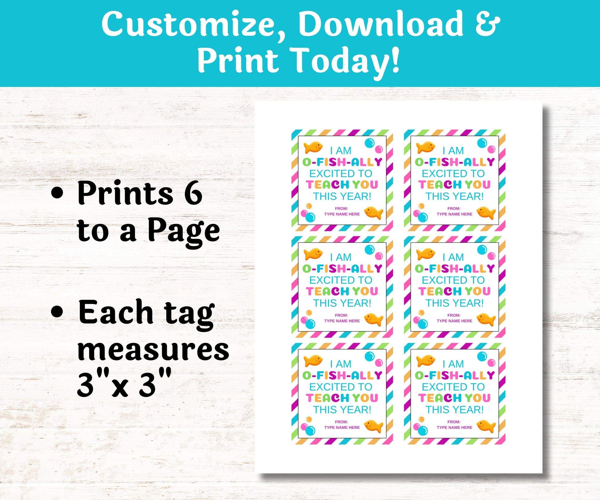 Our "I am O-Fish-Ally Excited to Teach You This Year" gift tags make the perfect surprise gift for students at your Meet the Teacher day or the First Day of School! Just attach each tag to a bag of goldfish and you have an instantly adorable gift your students will love!