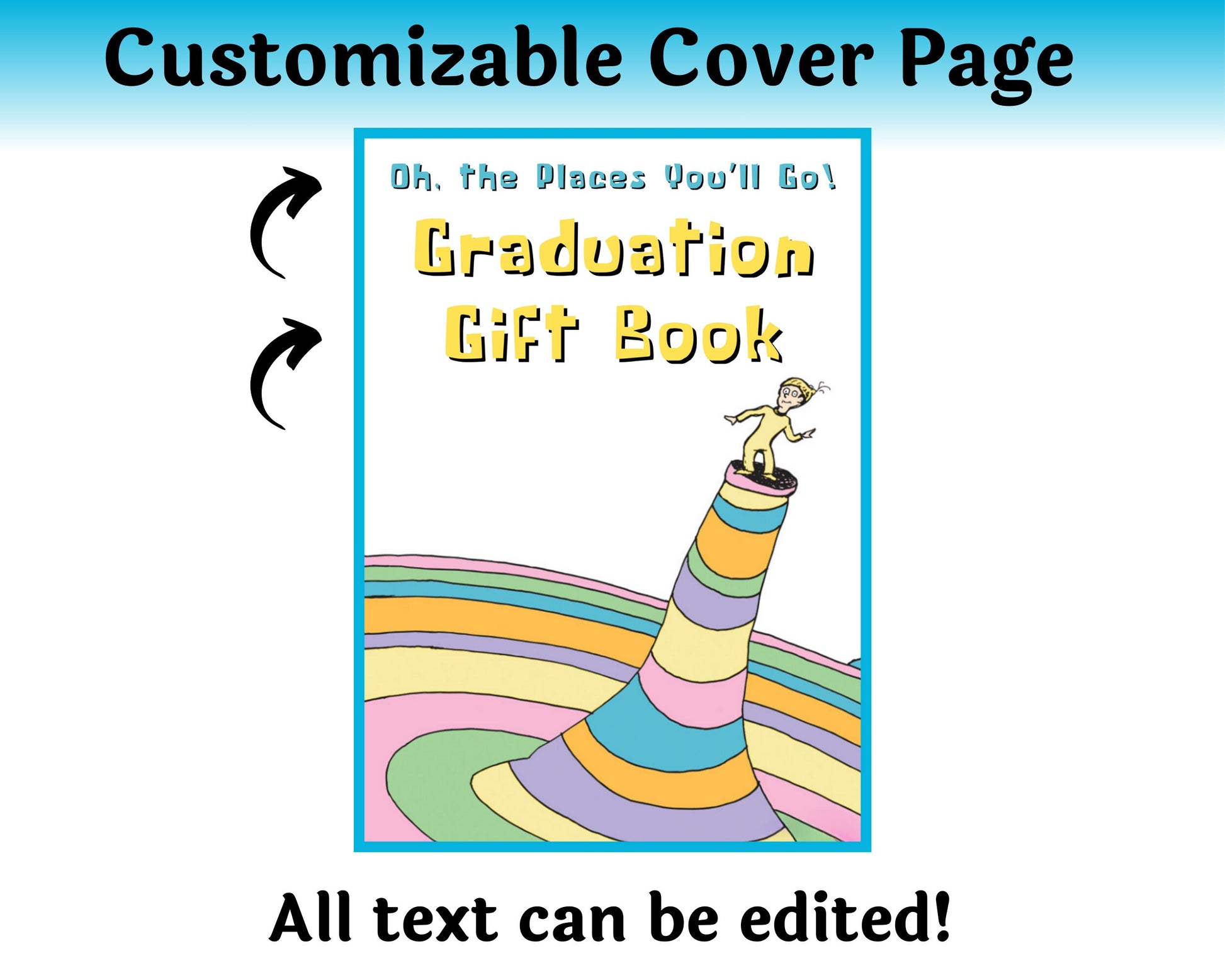 Editable Dr. Seuss Places You'll Go Graduation Gift Card Book — Instant Download