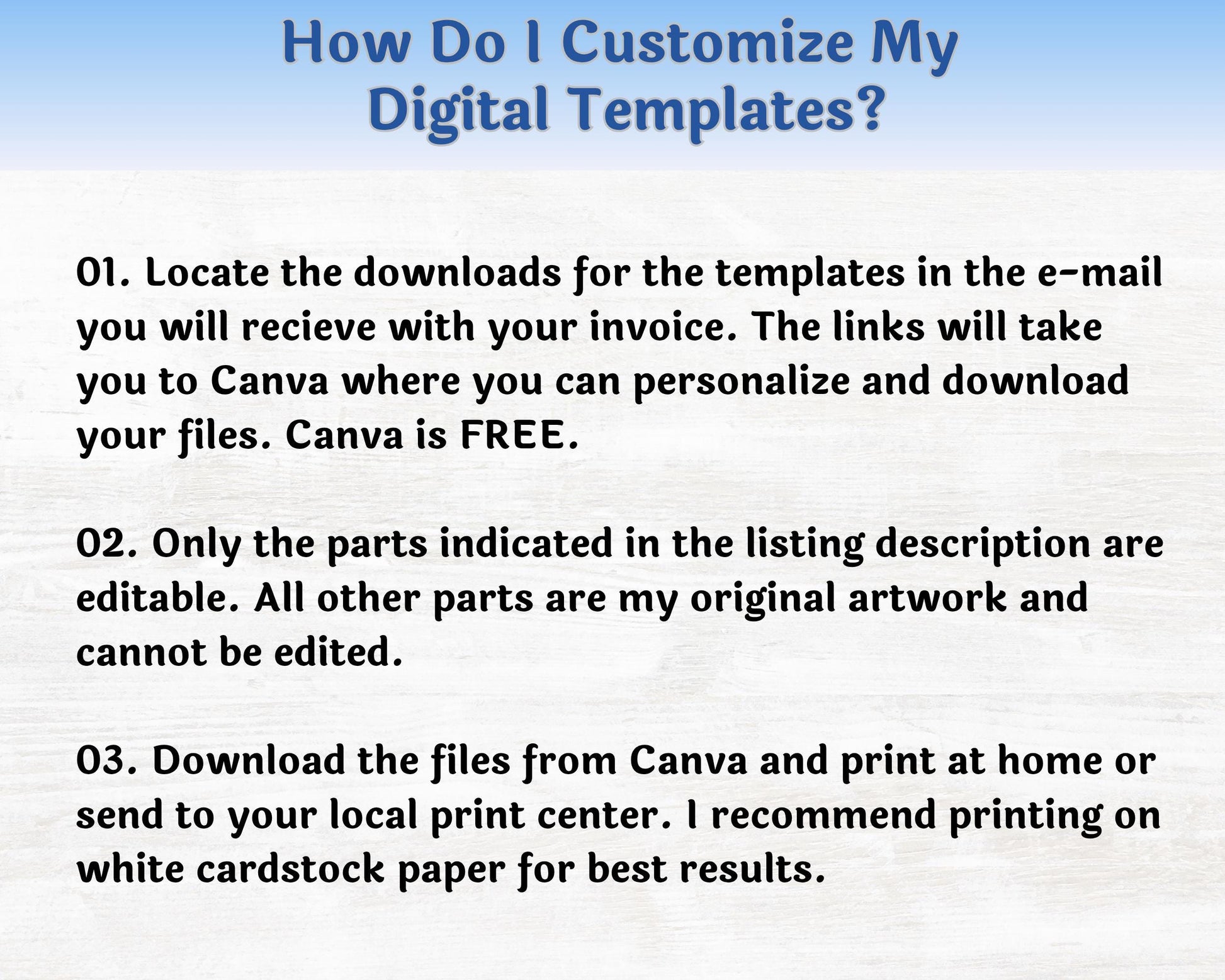 ❤️ Please reach out if you have any issues editing your template. I would be happy to help.