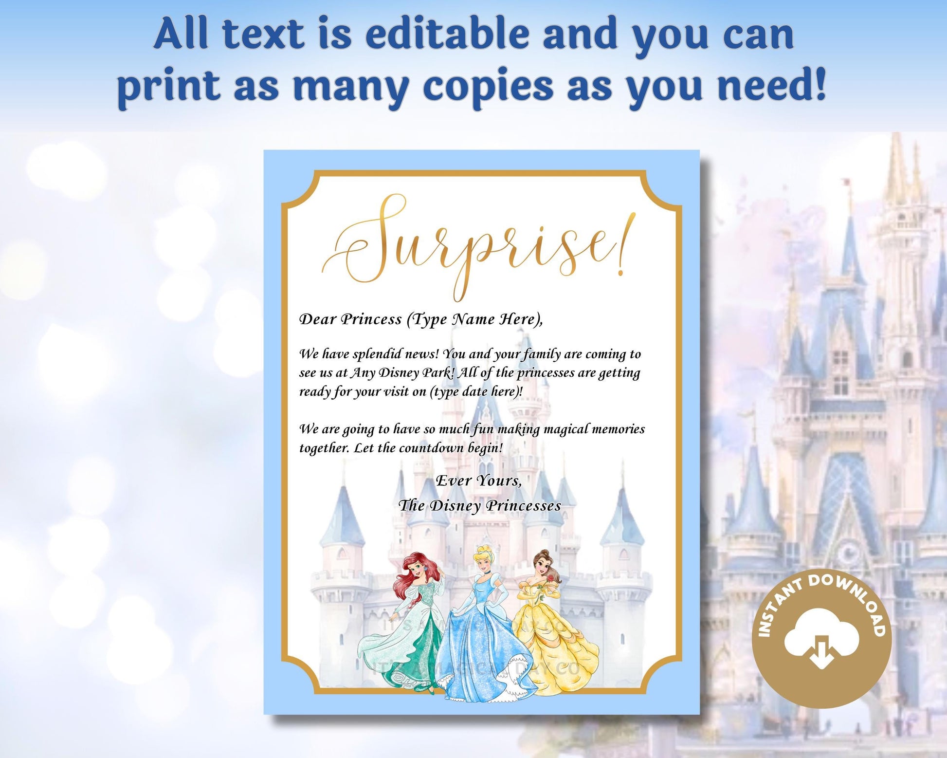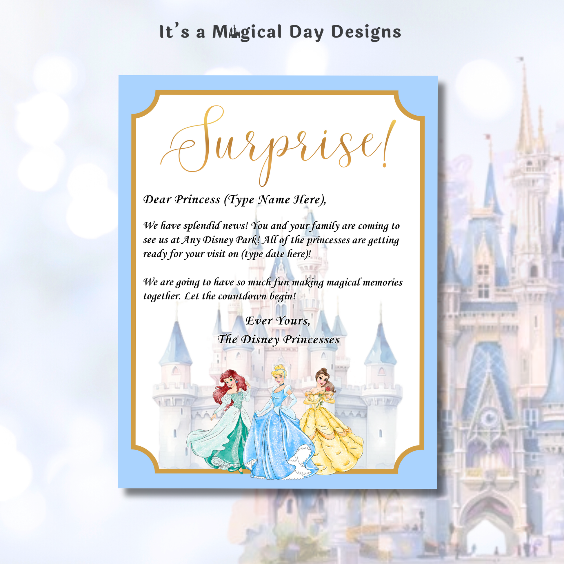 Editable Disney Princess Trip Reveal Letter